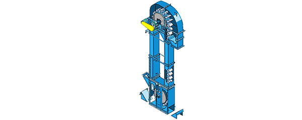 斗式提升機(jī)或斗式輸送機(jī)由運(yùn)行部分(料斗與牽引膠帶),帶有傳動(dòng)滾筒的上部區(qū)段,帶有拉緊滾筒的下部區(qū)段,中間機(jī)殼,驅(qū)動(dòng)裝置,逆止制動(dòng)裝置等組成,適用于向上輸送松散密度ρ<1.5t/m3粉狀、粒狀和小塊狀的無磨琢性和半磨琢性散狀物料,如煤、砂、焦末、水泥、碎礦石等。